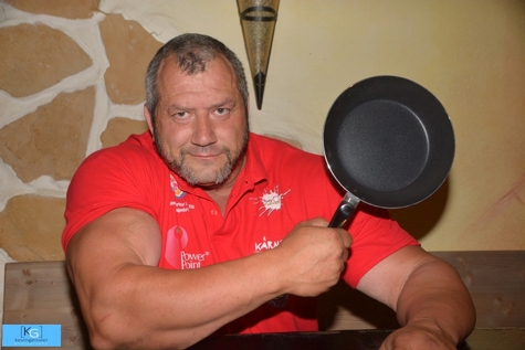 Der Strongman, der heuer am 1. Mai in Bruck an der Mur Vizestaatsmeister im LKW ziehen wurde, ließ in der Steirer Alm keinen Stein auf dem Anderen. Das 180 kg schwere Muskelpaket aus St.Veit an der Glan stemmte Fässer und drückte mühelos Riesenhanteln nach oben, oder nahm kurz mal Zuseher auf die Schulter.