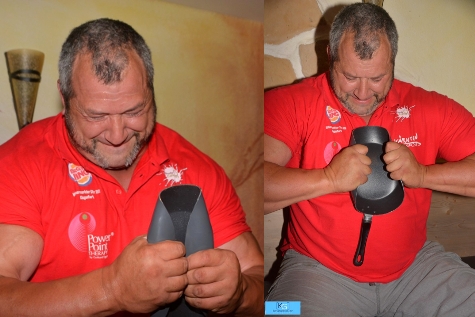 In der Alm verbog er dazu Eisenstangen und Nägel, rollte Bratpfannen zusammen oder zerriss einfach mal so eine Kette. „Das Verformen von Eisen liegt mir, davon kommt auch mein Showname“, sagt Hoi.
