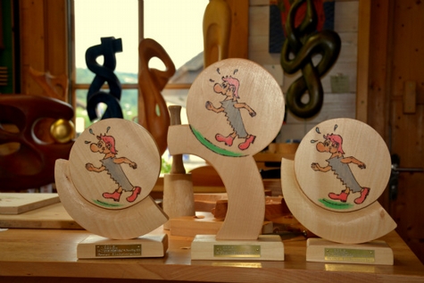 Seine außergewöhnlichen Sieger- Skulpturen prägen den Holzstraßenlauf von Anfang an –die Trophäen sind jedes Jahr ein wenig anders und eigens für den Lauf kreiert. Auch "Holzi" - der laufende Fuchsschwanz, das Logo des Holzstraßenlaufs kommt aus dem Atelier Hans Leitner und seiner Frau.