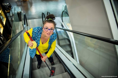 In ihrem dritten Soloprogramm schickt Marion Petric ihre aberwitzig-flotte Bühnenfigur „Fisch Grete” auf eine rasante Schnitzeljagd durch ein fiktives Einkaufszentrum.