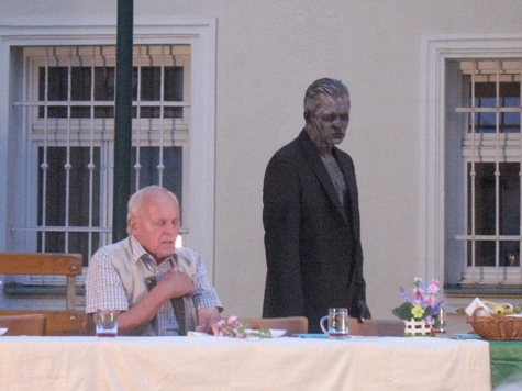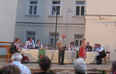 In diesen 20 Jahren hat der Kirchplatz und die Kirche uns stets begleitet, ob es die Premiere der ersten Aufführung der damals neu gegründeten Theatergruppe Phoenix am Kirchplatz war, weitere Aufführungen des Jedermanns am Kirchplatz, die geplante Aufführung des „Krach im Hause Gott“ in der Stadtpfarrkirche, die mit einem kleinen Eklat endete oder das letzte Stück „Der Tag, an dem der Papst gekidnappt wurde“ war, nun führt uns der Jedermann wiederum hier auf diesen schönen Kirchplatz zurück. Natürlich führt in bewährter Weise Inge Marksteiner die Regie und Horst Hack fungiert in seiner Paraderolle als Jedermann. Der Regisseurin war es ein Anliegen das Stück aus dem Jahre 1911 der heutigen Zeit anzunähern, da das Thema des Jedermanns- das Leben und Sterben eines reichen Mannes - nach wie vor größte Aktualität besitzt.
