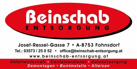 Für die Fohnsdorferinnern und Fohnsdorfer hat die Firma Beinschab die Betreuung des Abfallsammelzentrums der Gemeinde übernommen. Dort haben diese die Möglichkeit ihren Sperrmüll montags von 10:00 bis 12:00 und mittwochs bzw. freitags von 14:00 bis 16:00 anzuliefern. [...]