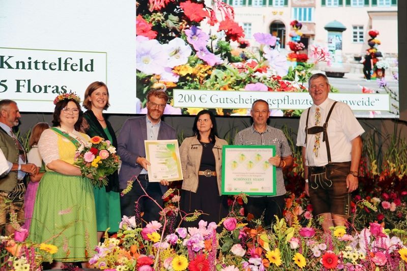 Rund 47.000 Blumen schmücken die Stadt Knittelfeld. Das wurde auch heuer wieder mit „5 Floras“ belohnt. Gestern wurde die Auszeichnung an Bürgermeister Harald Bergmann, an den Leiter der Stadtgärtnerei, Bertold Knapp und an die Mitarbeiterin Elisabeth Burböck überreicht. Knittelfeld erreichte neben Bad Aussee, Leoben, Liezen und Voitsberg „5 Floras“.