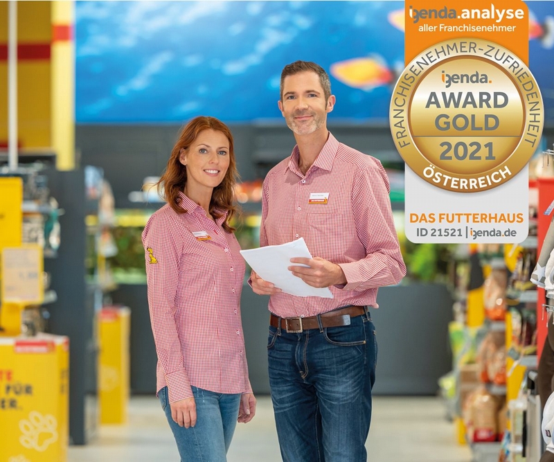 Mit einem hervorragenden Ergebnis hat DAS FUTTERHAUS Österreich bei der Zufriedenheitsbefragung durch das unabhängige Forschungsinstitut igenda überzeugt und wurde für die hohe Zufriedenheit seiner Franchisenehmer mit dem igenda-Gold-Award ausgezeichnet.