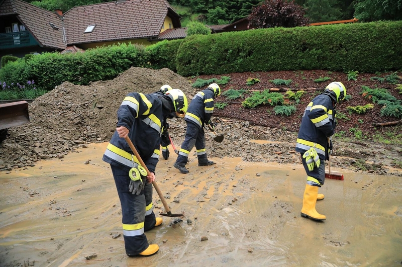 Wetterumschwung zog zahlreiche Feuerwehreinsätze nach sich. Eine kurze aber dafür umso kräftigere Gewitterzelle zog ab Abend des 18. Juni über das Murtal und brachte dabei jede Menge Arbeit für die Feuerwehren Bischoffeld und Sachendorf mit. In Sachendorf trat gegen 20:00 Uhr ein Bach über die Ufer und verlegte dabei die Landesstraße 515 mit dutzenden Kubikmetern an Schlamm und Geröll.