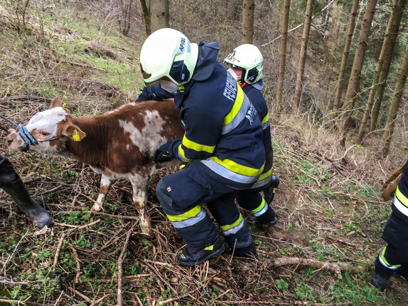 Zu einer aufwendigen Rettungsaktion kam es am 19. April gegen 16:50 Uhr in Apfelberg. Grund dafür war ein kräfteraubender und schweißtreibender Start in den Feierabend für die 12 alarmierten Einsatzkräfte der Feuerwehr Apfelberg. Ein rund 130 Kilo schweres Kalb war in einem steilen Waldstück in eine Grube gefallen und konnte sich nicht mehr selbständig befreien. Mit vereinten Kräften von ...