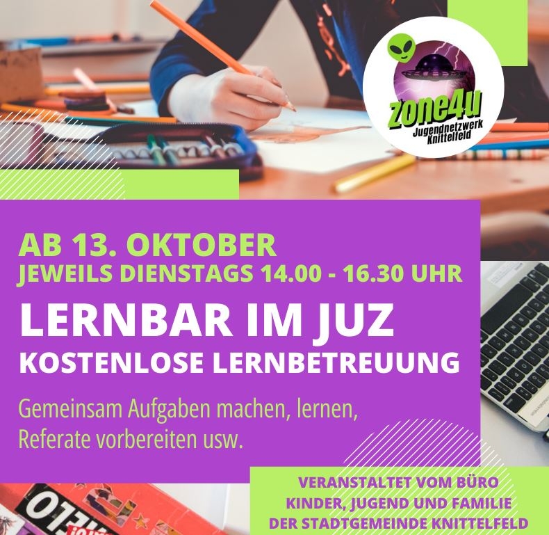Der Lockdown zog auch die Vergrößerung der Bildungsschere nach sich. Um diesen Effekt entgegen zu wirken wird ab dem 12. Oktober im zone4u-Jugendzentrum Knittelfeld (Haus der Vereine, Marktgasse 22) an einem Tag pro Woche (jeweils dienstags von 14-16.30 Uhr) für SchülerInnen zwischen 12-21 Jahren kostenlose Lernbetreuung angeboten. Die jungen BesucherInnen werden beim Hausaufgaben machen und bei ...