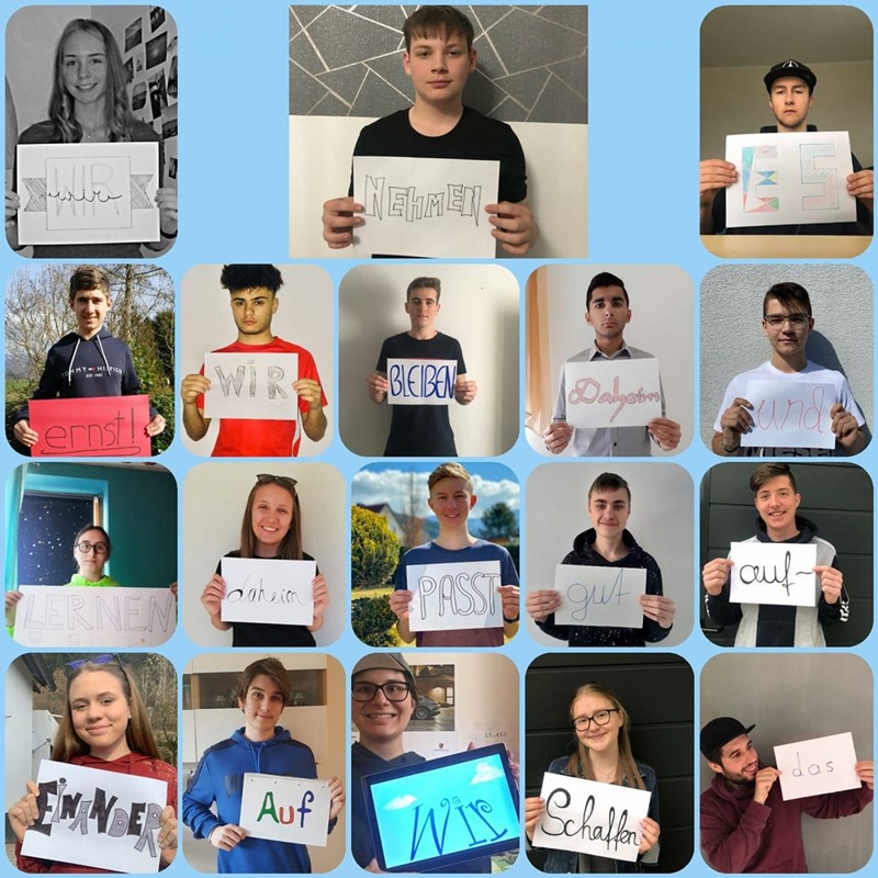 Doch die Schülerinnen und Schüler der HTL Zeltweg sind dem gewachsen. E- Learning wurde eingeführt und es blieb auch noch Zeit für ein kleines Projekt. Die 4AHBTH hat – gemeinsam mit Klassenvorstand Mag. Gerd Loibnegger – eine Bildbotschaft entworfen, um auf die aktuelle Lage hinzuweisen. Mit dieser Message möchten die Schülerinnen und Schüler alle ermuntern, (wenn möglich) in den eigenen vier Wänden zu bleiben – für eure Gesundheit und auch für die Gesundheit der anderen.