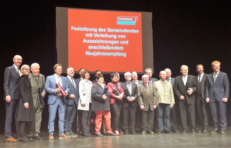 In der Festsitzung am 27. Jänner im Knittelfelder Kulturhaus mit zahlreich erschienen Gästen, verlieh Bürgermeister DI (FH) Harald Bergmann gemeinsam mit den Laudatoren die Ehrenbürgerschaft an den ehemaligen Bürgermeister DI (FH) Gerald Schmid, 2 Goldene Ehrenringe, sowie 10 Ehrennadeln in Gold an verdiente Persönlichkeiten.