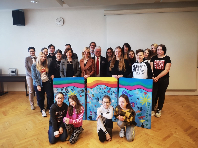 Am 22. Jänner 2020 fand um 09:45 Uhr in der BHAK/BHAS Judenburg die feierliche Überreichung von Bildern statt, die im Rahmen des Projekts „Einzigartig und doch eins“ entstanden sind. Linda Stiegmaier, Schülerin der 5BK der BHAK/BHAS Judenburg und Projektinitiatorin, bedankte sich noch einmal bei allen, die mitgemacht und unterstützt haben, und überreichte den Schülerinnen und Schülern für ihre Schule je ein Bild.