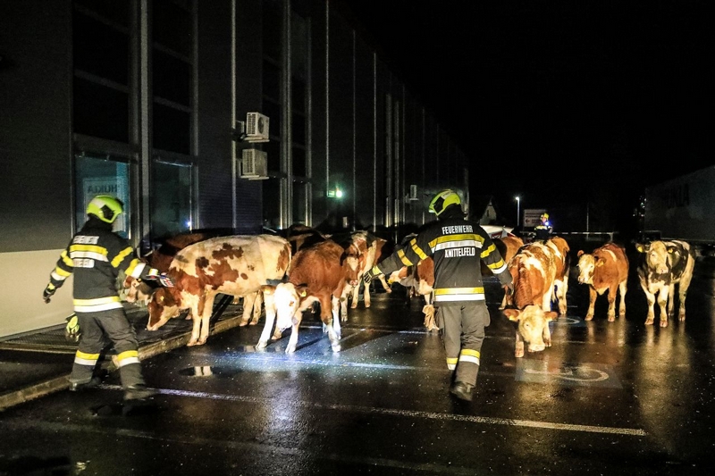 Zu einem nicht alltäglichen Einsatz rückten 22 Feuerwehrmänner aus Knittelfeld am 29. Oktober um 20:25 Uhr aus. Aus nicht näher bekannten Umständen kamen 16 Kühe von einer Weide aus und liefen durch das Stadtgebiet von Knittelfeld. Während ein Teil der Feuerwehrmänner die Straßen für den Verkehr sperrte, versuchte der zweite Teil der Mannschaft die Kuhherde wieder in Richtung Weide zu treiben, ...