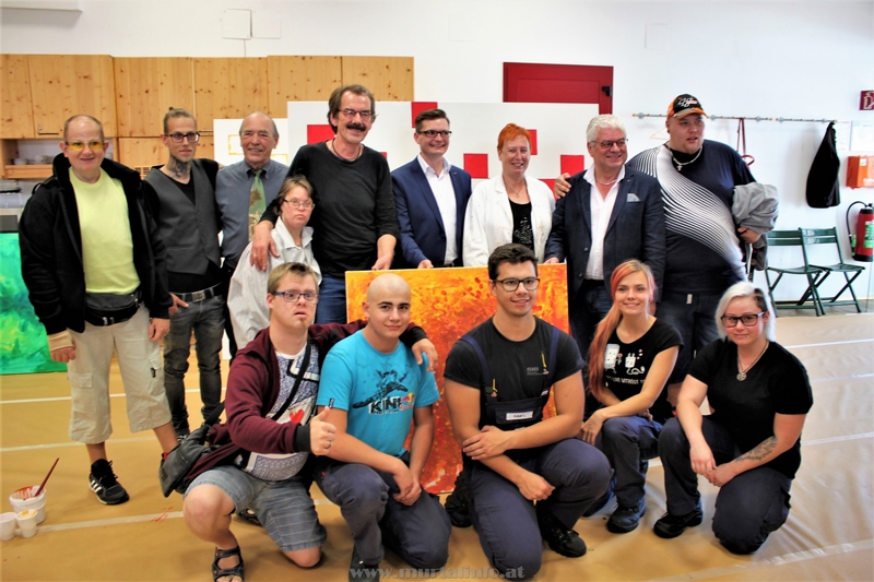 Dort, wo für gewöhnlich Automotive-Bauteile wie Kolbenstangen – ausgelegt für maximale Belastungen – entstehen, kehrt diese Woche künstlerisches Miteinander ein: Großflächig entstehen am Werksgelände der Stahl Judenburg das Emblem des Unternehmens in fünf kräftigen Farben. Bei der Pressekonferenz gestern im etwas anderen Atelier, wurden die ersten Kunstwerke präsentiert, welche die gelebte Inklusion der Stahl Judenburg zeigten.