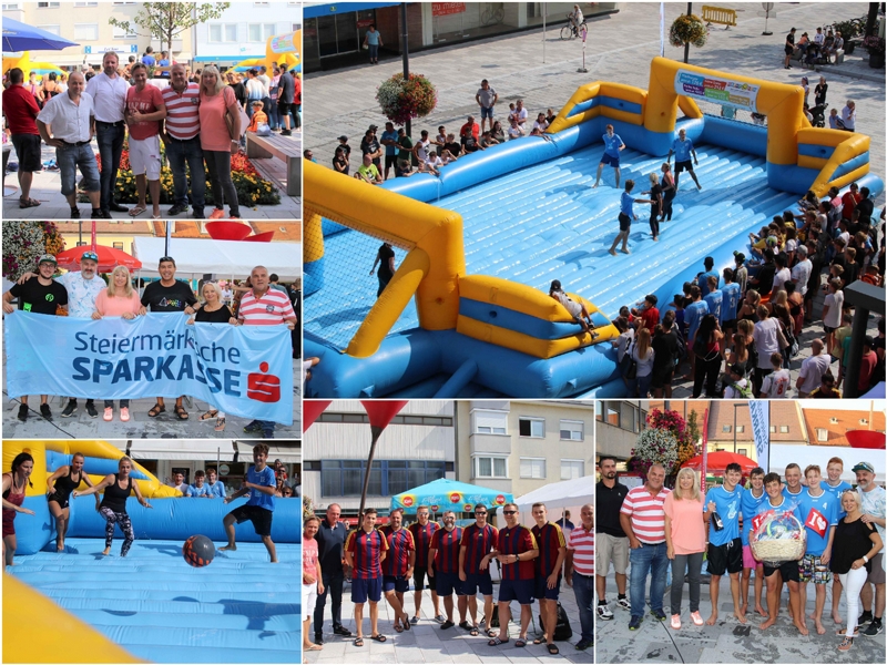 Sport, Spaß und coole Musik am Knittelfelder Hauptplatz Rutschig und sportlich ging es am Freitag, den 30. August am Knittelfelder Hauptplatz zu. Organisiert vom Büro Kinder, Jugend und Familie, der Stadtgemeinde Knittelfeld, fand zum 1. Mal das Water-Soccer-Turnier statt. Neben Bürgermeister Gerald Schmid, schauten sich auch zahlreiche GemeinderätInnen die spannenden Spiele an.
