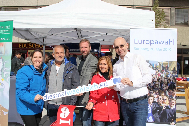 Anlässlich des Europatages und der bevorstehenden Europawahl am 26. Mai, fand vor Kurzem der Europatag am Knittelfelder Hauptplatz statt. Veranstaltet wurde er von der Stadtgemeinde Knittelfeld, unter GRin Deshire Shehu, Referentin für Bevölkerungsentwicklung, EU und internationale Beziehung.