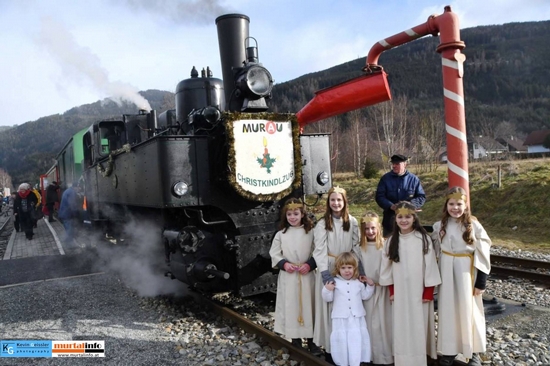 Voller Vorfreude der vielen mitreisenden Kinder aufs Christkind fuhr der nostalgische Christkindl-Dampfzug Schnaubend, dampfend, pfauchend und zischend durch die winterliche Landschaft von Murau nach Stadl an der Mur und wieder zurück. Begleitet wurde die Fahrt von fleißigen Engerl, die an alle Kinder kleine Geschenke verteilten.