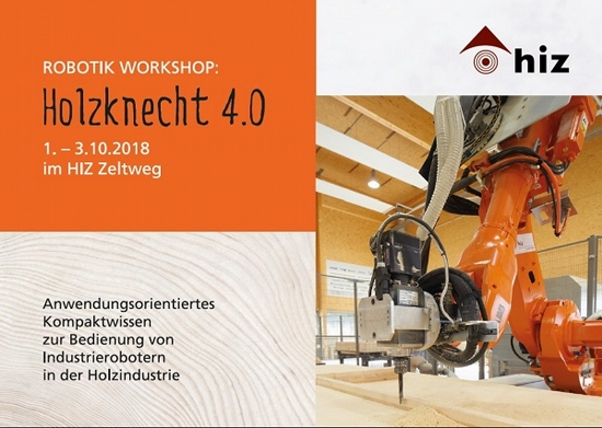Weiterbildung in der Region für Unternehmer aus der Region Mit dem Ziel, Unternehmer aus der Region für Herausforderungen zu rüsten, vor die der wirtschaftliche Wettbewerb sie stellt, und um dem derzeit um sich greifenden Fachkräftemangel entgegenzuwirken, bietet das Holzinnovationszentrum unter dem Motto „Holzknecht 4.0“ Workshops und Weiterbildungen im Bereich der Robotik an. Topaktuell ...