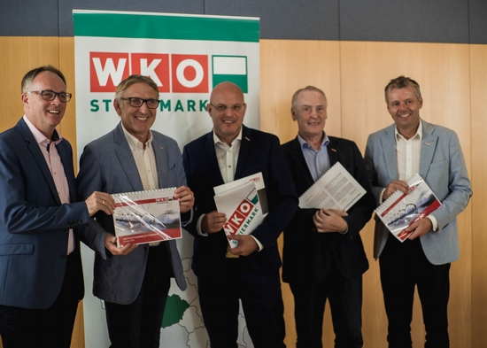 WKO Präsident Josef Herk, Regionalstellenleiter Michael Gassner und die regionalen Funktionäre Norbert Steinwidder, Karl Schmidhofer, und Hans-Peter Wimmer präsentierten wahrscheinlich zum letzten Mal im alten Gebäude der Wirtschaftskammer das halbjährliche Wirtschaftsbarometer für das Murtal und Murau. Der Umzug in das neue Gebäude der Kammer in der Judenburger Burggasse soll noch heuer über die Bühne gehen.