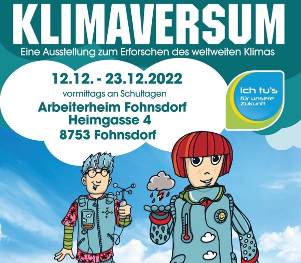 Klimaversum – eine Ausstellung zum Erforschen des weltweiten Klimas ist im Arbeiterheim Fohnsdorf bis 23. Dezember 2022 vormittag an Schultagen zu sehen.
