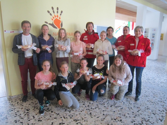 Einer lieben Tradition folgend machten sich einige Schülerinnen der dritten und vierten Klasse der NMS Neumarkt, unterstützt von ihrer Lehrerin Elisabeth Koch, bereit, um auch dieses Jahr für die Kunden der Team Österreich Tafel zu backen. Dieses Mal handelte es sich um aus Germteig gefertigte Osternesterl, bei denen natürlich das rote Ei nicht fehlen durfte. Hübsch verpackt konnten diese dann am 24. März 2018 im Rahmen der Tafelausgabe verteilt werden.