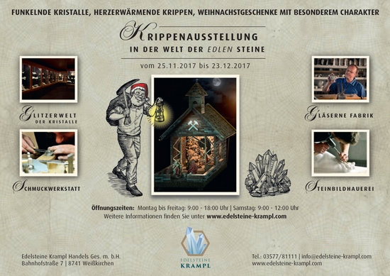 In der Edelsteinmanufaktur eine Vielzahl an Produkte und Geschenkideen für jeden Anlass und in jeder Preisklasse findet man ebenfalls in der Edelsteinmanufaktur. Hier gibt es echt steirische Handwerkskunst. Handgeschliffene Steinschalen, Dekor, wie Weihrauchbrenner, Lampen und Kerzenständer aus regionalen Naturstein, Heilsteine und ein große Auswahl an Edelstein- und Silberschmuckvariationen. ...