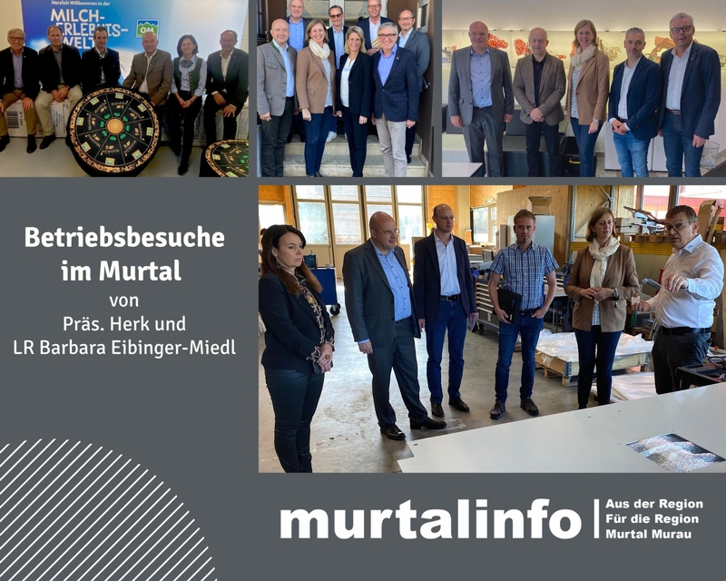Landesrätin Barbara Eibinger-Miedl und WK-Präsident Josef Herk besuchten mit der Zellstoff Pöls AG, NET-Automation GmbH., Leichtfried Loden, Stahl Judenburg GmbH., Sandvik Mining and Construction GmbH. und der Obersteirischen Molkerei Topbetriebe des Bezirkes. Den informativen und kompetenten Firmenpräsentationen wohnten auch LAbg. Bruno Aschenbrenner, Bundesrätin Isabella Kaltenegger, WB-Bezirksobmann Norbert Steinwidder und WK-Regionalstellenleiter Michael Gassner.