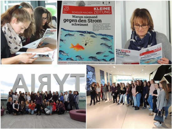 Die 2. Klasse wurde heuer zur Teilnahme beim Zeitungsprojekt ausgewählt und dazu eingeladen eine eigene Zeitung zu produzieren. Über mehrere Wochen haben die Mädchen im Unterricht und in der Freizeit an den journalistischen Texten gearbeitet und experimentiert. Beim ersten Projekttag mit den Redakteuren stand zuerst die Themenfindung am Programm, anschließend wurde die Zeitungsstruktur erarbeitet ...