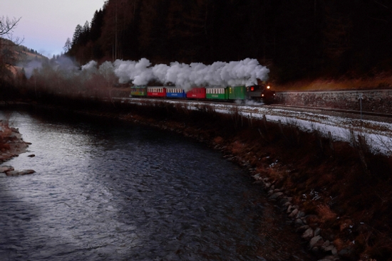 Eisenbahnnostalgie, kommen voll auf ihre Rechnung. Eine Fahrt mit dem Dampfbummelzug der Murtalbahn vereint mit einer wunderbaren Winterlandschaft, lässt so ein Ereignis zu einem Erlebnis werden. Das historischen Ambientes, das die behäbig wirkende Dampflok ausstrahlt und die geschichtsträchtigen Wagons der Murtalbahn in denen schon Kaiser Franz Joseph saß, um zur Gämsenjagd nach Murau zu fahren, lassen auch heute noch die Herzen von Jung und Alt höher schlagen.