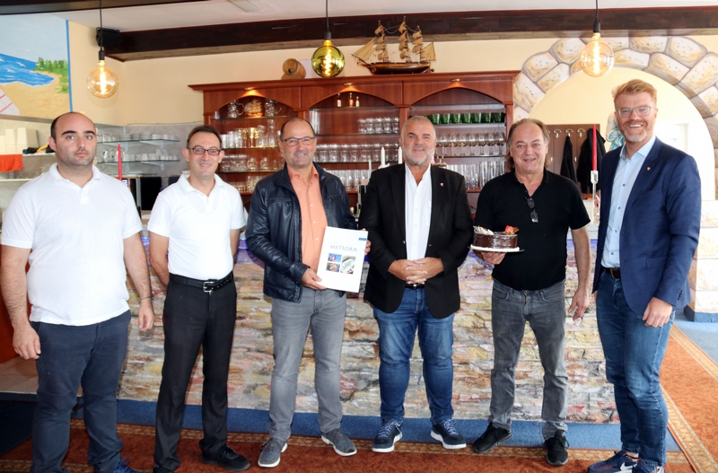 Mit einem freundlichen „Kalí méra“ wurden Bürgermeister Harald Bergmann, 1. Vizebürgermeister Erwin Schabhüttl und 2. Vizebürgermeister Wolfgang Knauseder vom Eigentümer Vaseles Tsekuras im neuen Restaurant Meteora in der Kärntner Straße 56 begrüßt.
