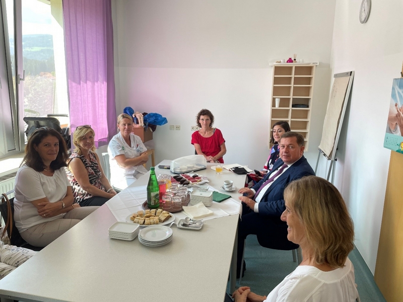 Das Direktorium des Murtaler LKH-Verbundes, Ärztlicher Direktor Prim. Dr. Michael Jagoditsch, Betriebsdirektorin Dipl. KHBW Sabine Reiterer, MSc, MBA sowie Pflegedirektor DGKP Harald Tockner, MBA führte den Landesrat durch die verschiedenen Bereiche des Standortes Judenburg. Vor dem Hintergrund des zunehmenden Fachkräftemangels im Gesundheitsbereich nutzten das Direktorium des LKH Murtal und ...