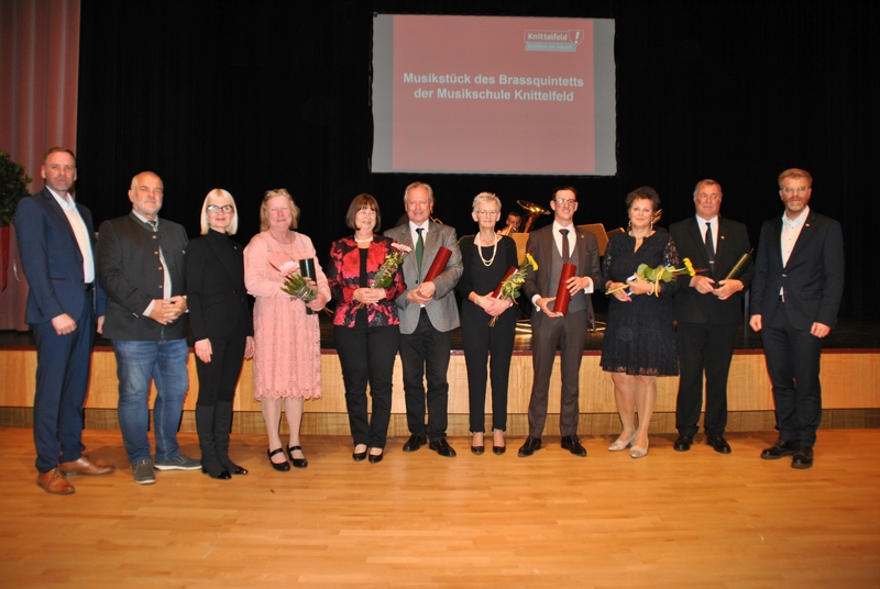 Gestern fand im Knittelfelder Kulturhaus eine Festsitzung des Gemeinderates statt, wo verdiente Persönlichkeiten geehrt wurden. Es wurden fünf Dank- und Anerkennungsschreiben für ausgeschiedene GemeinderätInnen, zwei Ehrennadeln in Silber, zwei Ehrennadeln in Gold sowie neun Landesehrungen verliehen. Ein Höhepunkt der Veranstaltung war die Verleihung der Goldenen Ehrennadeln, die acht Personen für ihre Tätigkeiten für die Stadt Knittelfeld erhielten.