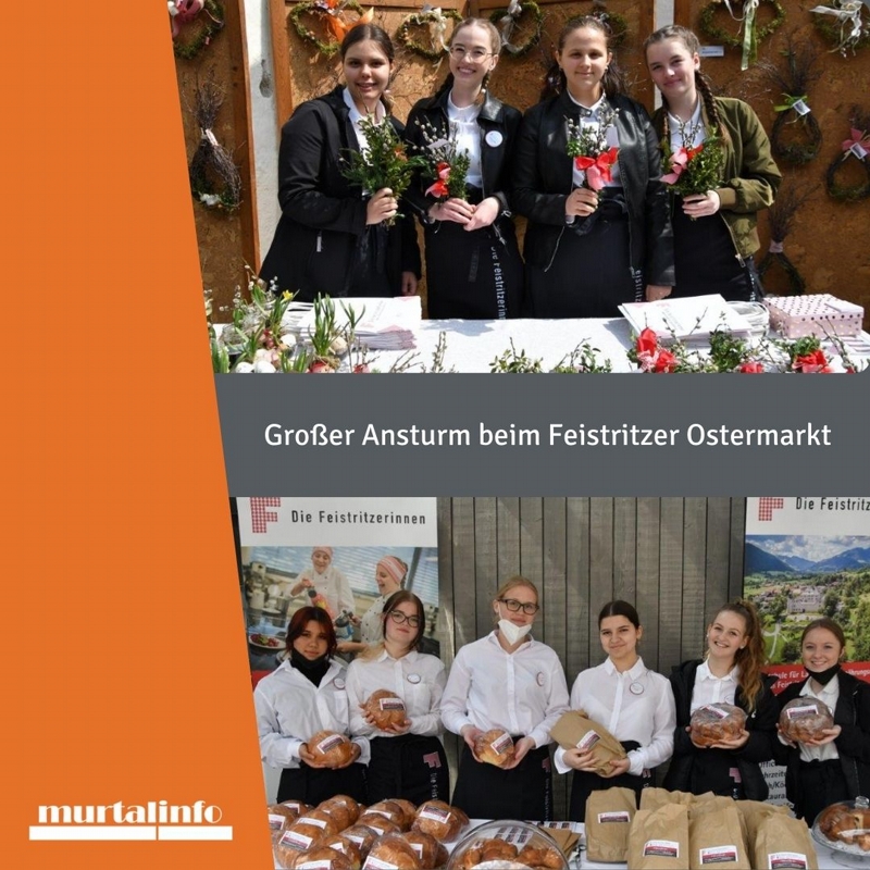 Die Feistritzer*innen brillierten beim diesjährigen Ostermarkt wieder mit einer besonderen Veranstaltung. Nach wochenlangen Vorbereitungen konnten die eigenen Produkte wie Selchfleisch, Osterwürste, Leberpasteten, Hausbrot, Osterpinzen, Reindlinge und Osterfloristik in perfekter Aufmachung den Besucher*innen angeboten werden.