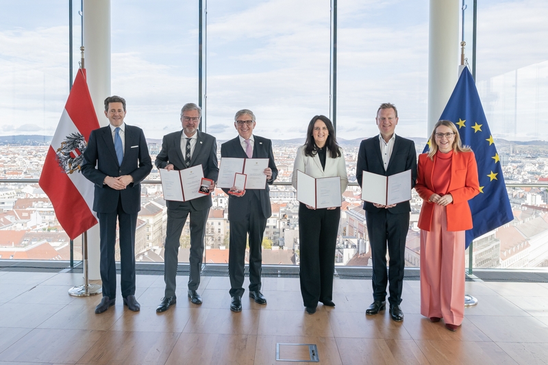 Das EuroSkills 2021 Team hat die Berufseuropameisterschaften erstmals nach Österreich geholt und erfolgreich durchgeführt. Für diesen Einsatz verlieh Ministerin Schramböck dem Initiator Josef Herk das Große Silberne Ehrenzeichen und Karl-Heinz Dernoscheg das Große Ehrenzeichen für Verdienste um die Republik Österreich.