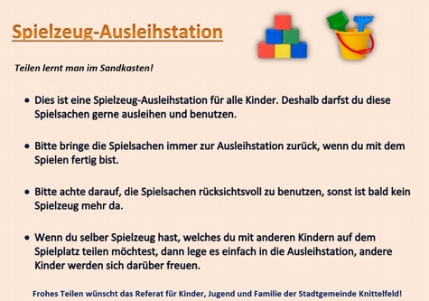 Fototext: Regeln der Spielzeug-Ausleihstation.
